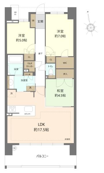 3LDK LDK 17.5帖 / 和 4.5帖 / 洋 7.0帖 / 洋 5.0帖
