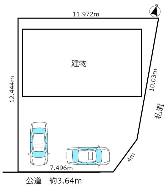 | 接道状況 | 公道 南 3.64m | 接道状況 | 私道 東 4.00m |