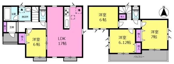 1F LDK 17.5帖 / 1F 洋 6.0帖 / 2F 洋 7.0帖 / 2F 洋 6.12帖 / 2F 洋 6.0帖